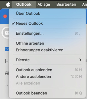- Wähle oben „Outlook“ und klick auf Neues Outlook.